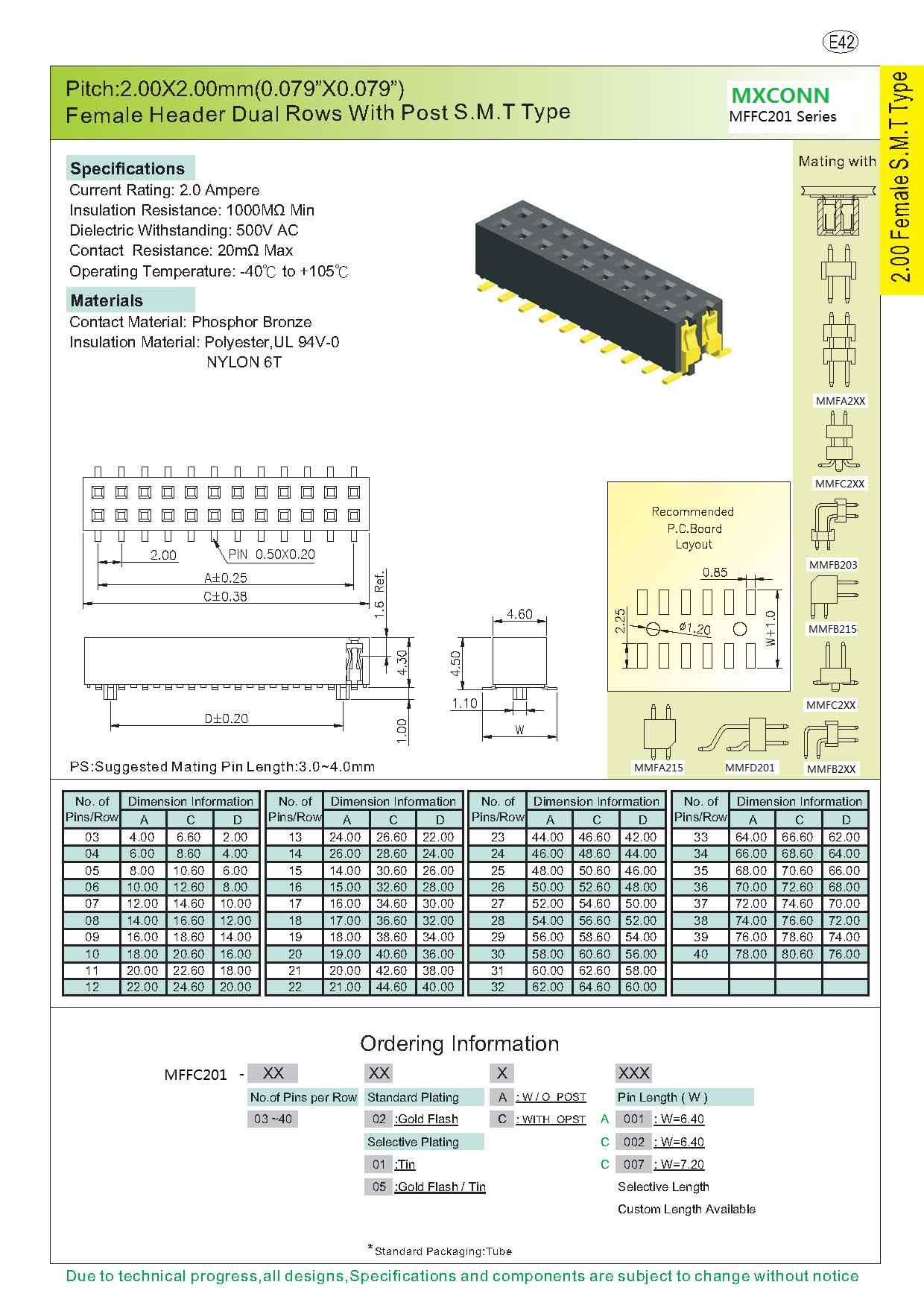 ·Pitch:2.0mm