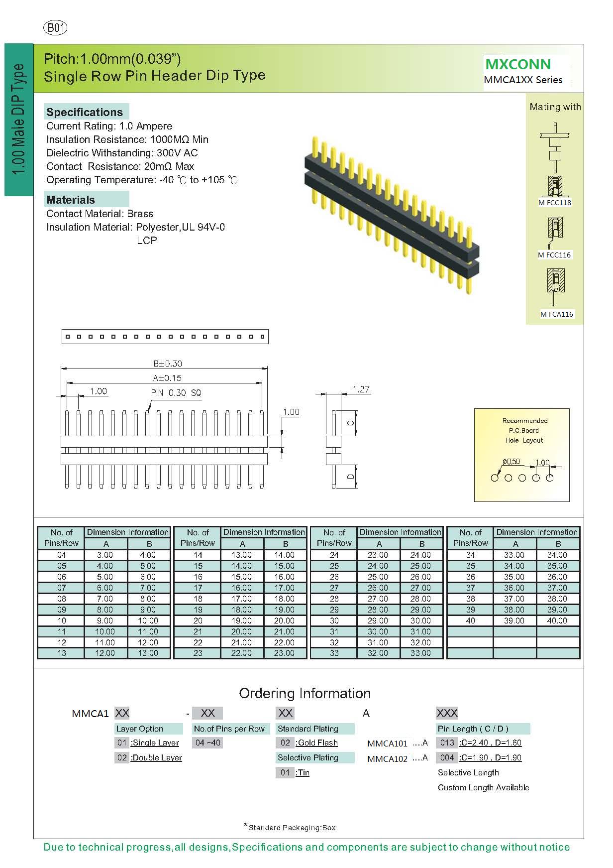 ·Pitch:1.0mm-C