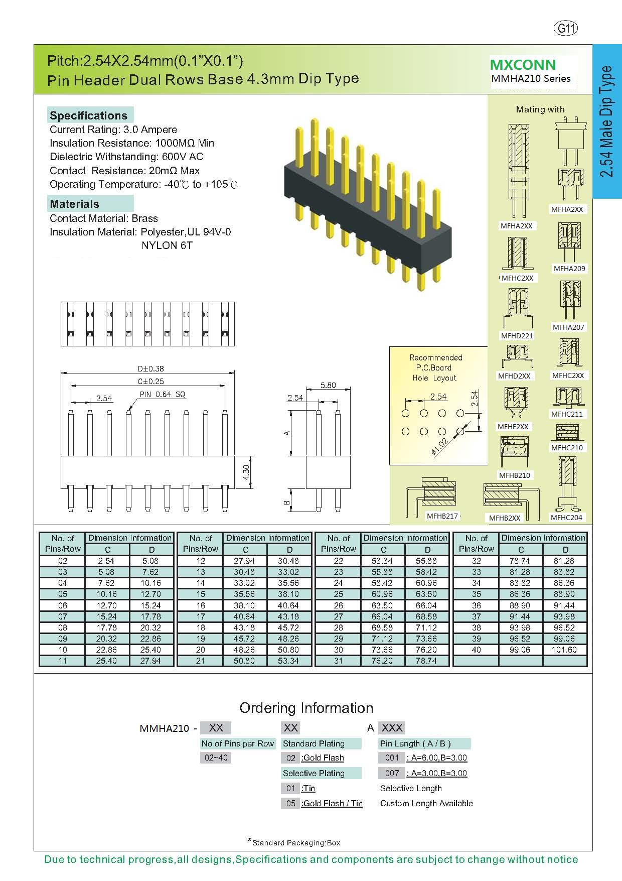 ·Pitch:2.54mm