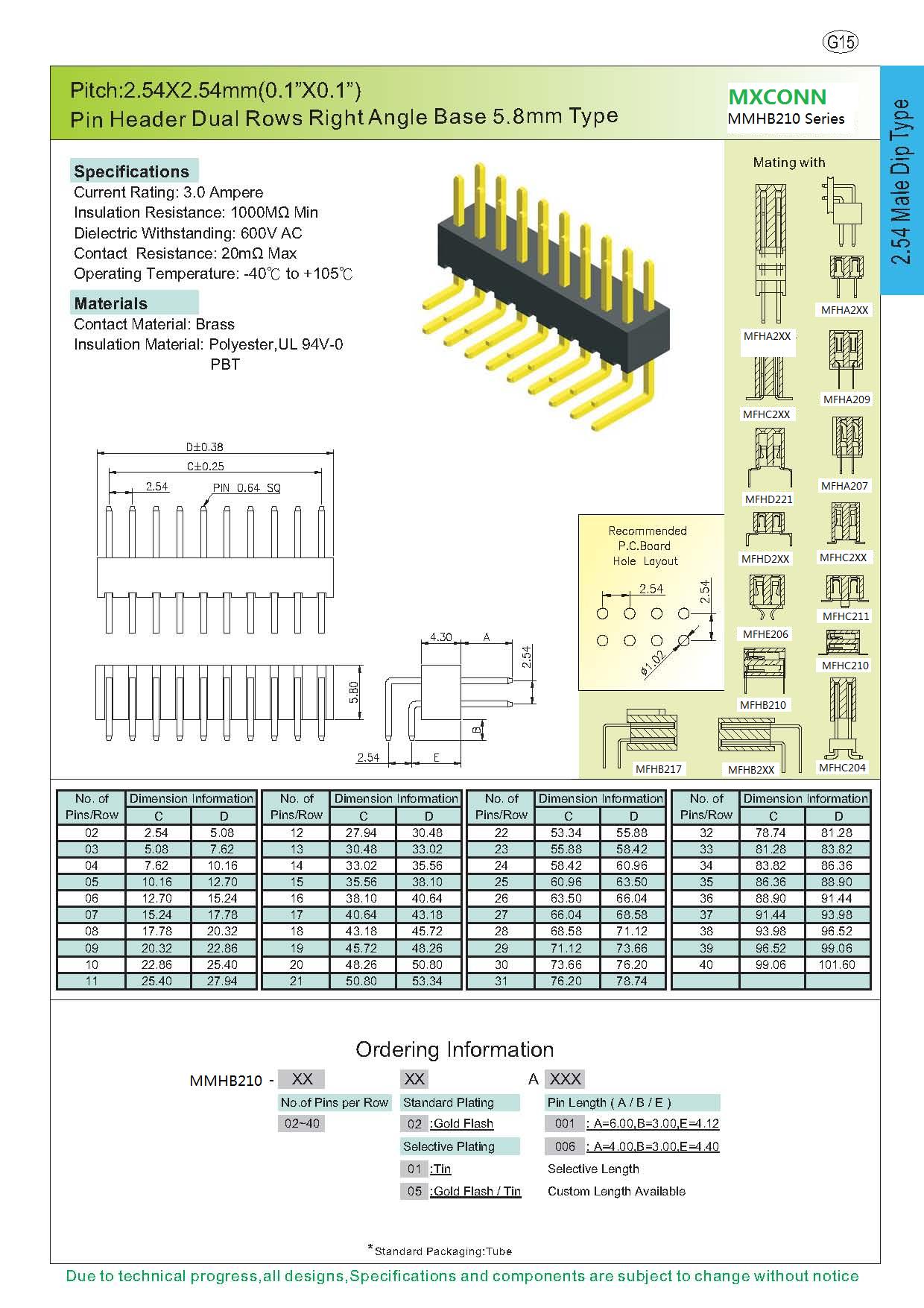 ·Pitch:2.54mm